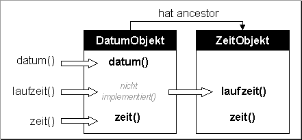 Das Script DatumObjekt implementiert die Methoden datum() und zeit(). Als ancestor wird ein von ZeitObjekt abgeleitetes Objekt definiert: