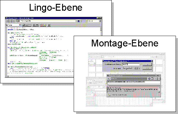 Macromedia Director ist ein Autorenwerkzeug. Es ist so angelegt, dass Konzeption, Design und Programmierung einer einfachen Anwendung von ein und derselben Person ausgeführt werden können. Bei komplexeren Aufgaben ist jedoch üblich, dass die Programmierung und die Montage der Grafiken von verschiedenen Personen ausgeführt werden. Verhalten schaffen 2 Bearbeitungsebenen, um dieser Arbeitsweise gerecht zu werden. Der Programmierer programmiert wie bisher seine Skripte im Skriptfenster. Zusätzlich sorgt er dafür, dass bei der Montage Eingabemasken und Kommentare zur Verfügung stehen. Der Monteur muss sich mit den Skripten nicht mehr befassen - er arbeitet wie gewohnt mit visuellen Arbeitsmitteln.
