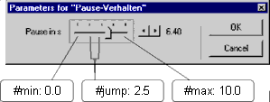 Eine weitere, jedoch undokumentierte Eigenschaft für Float-Werte ist #jump, die festlegt, um welchen Betrag sich der Zeiger weiterbewegt, wenn auf den Schieberegler geklickt wird. Dieser Wert spiegelt sich in der Darstellung der Skala wider.