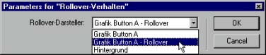 Bei der Angabe eines Darstellertypen, z.B. #bitmap, stellt Director automatisch eine Liste aller verfügbaren Darsteller in der Besetzung zusammen und zeigt diese in einem Pull-Down-Menü an. Ein Verhalten, dass einen Darsteller auf der Bühne durch einen anderen austauscht, sobald die Maus über ihm liegt, könnte seine Eigenschaft mRolloverMember wie folgt definieren: